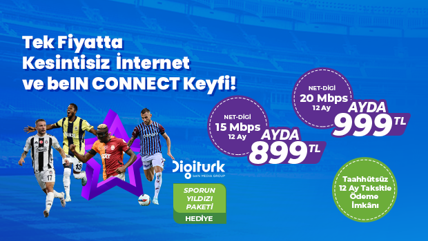 Nethouse ve Digitürk iş birliğiyle hayata geçirilen “Tek fiyatla kesintisiz ev interneti ve beIN CONNECT keyfi” kampanyası sayesinde, 15 Mbps veya 20 Mbps hızında 12 aylık ev interneti aboneliği alan herkese, yıllık Digitürk Sporun Yıldızı Paketi hediye!